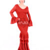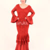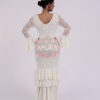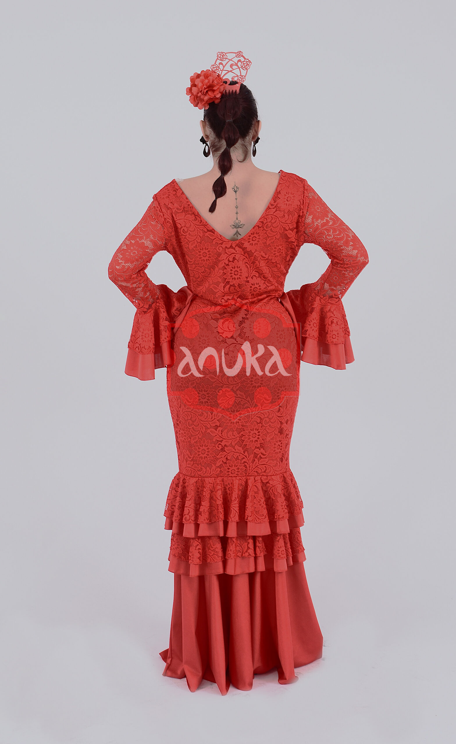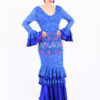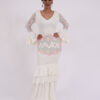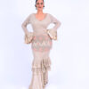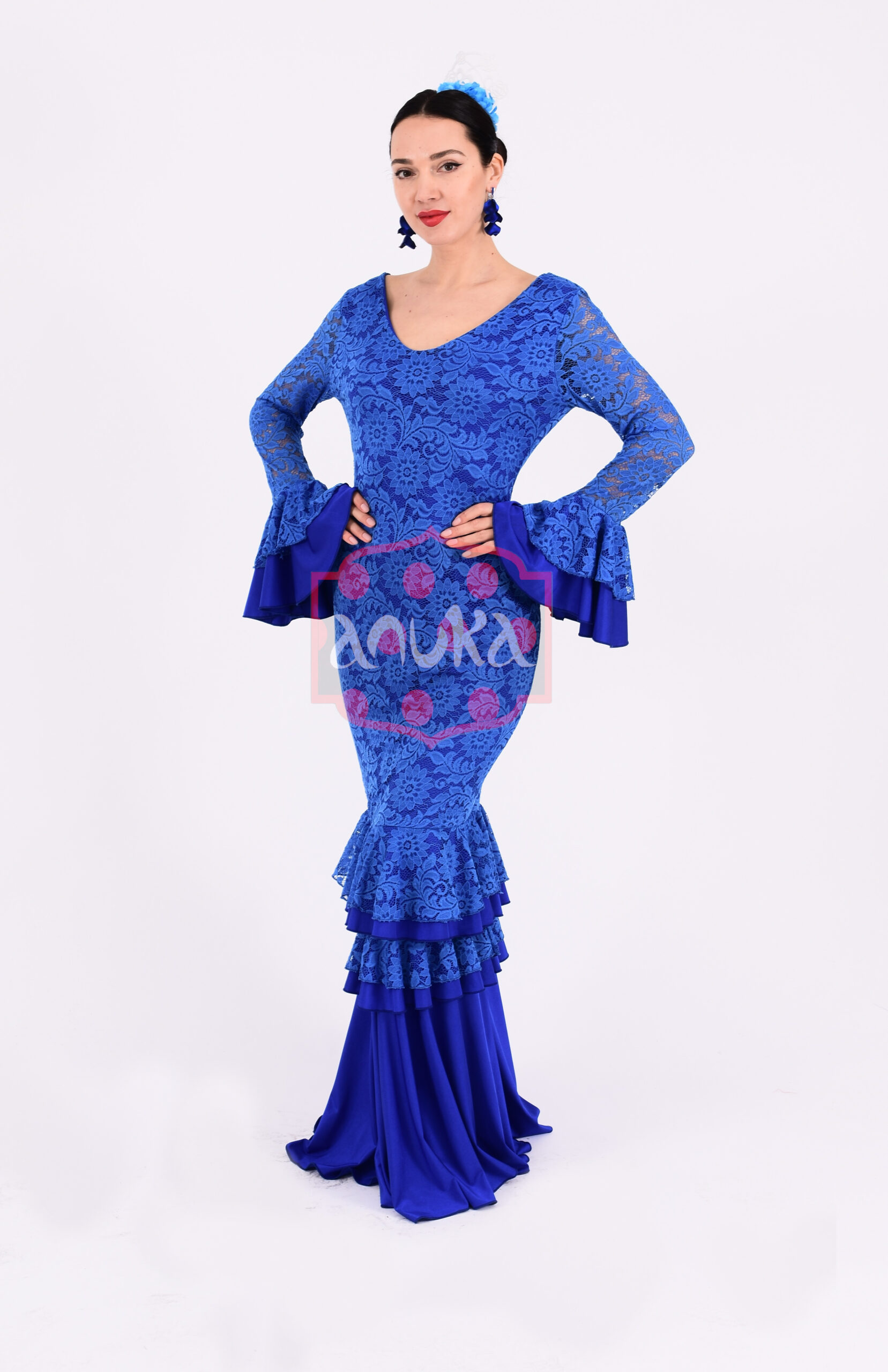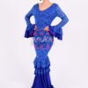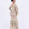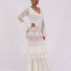 Vestido flamenco de encaje, triple volante bajero y doble en mangas, tejido elástico